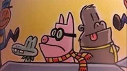 - In Dog Man: Lord of the Fleas to Dog Man: For Whom The Ball Rolls, Crunky always sticks his tongue out. Starting from Dog Man: Twenty Thousand Fleas Under The Sea, he doesn't.