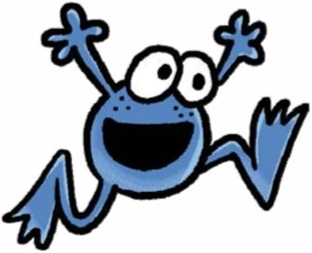 He is a blue baby frog and has freckles. He appears in these books: