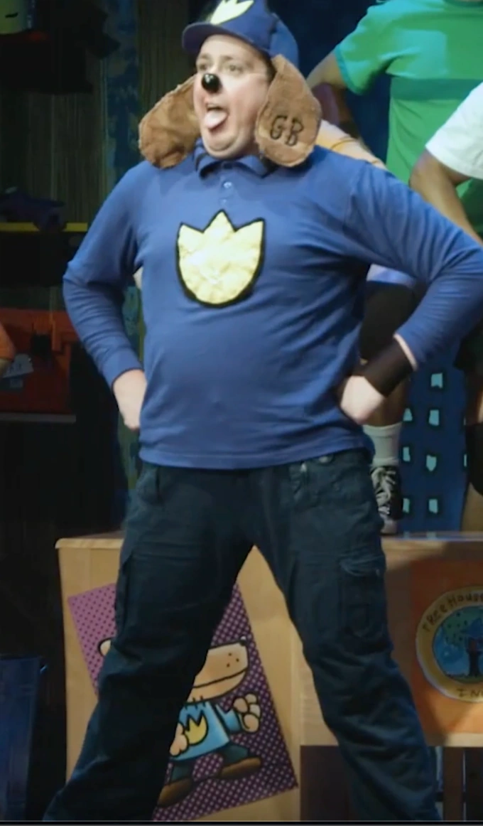 - Dog Man is played by the following: Brian Owen (Broadway), Michael Doliner and Brandon Butorovich (Tour) in the musical.