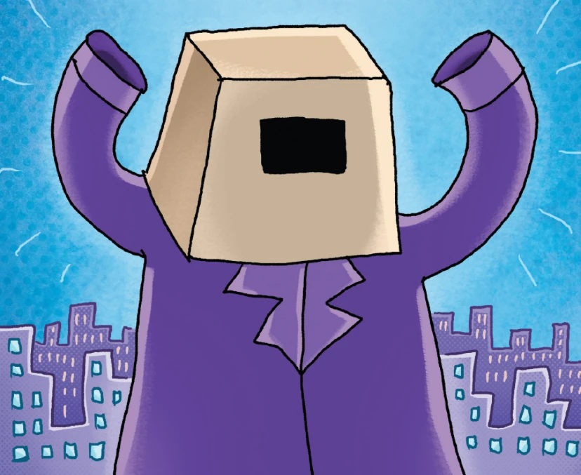 After discovering how his powers worked, Flippy cut out a hole in a paper bag, stole a purple trench coat and an orange, three-legged stool with black stripes from Chief to dress himself up as a human, becoming the Mysterious Stranger. He robbed Penelope's Pets, tied up Sarah Hatoff, Zuzu, and two Penelope's Pets workers, and then he stole a bunch of little plastic treasure chests, planning to get enough gold to purchase the biggest castle in the city. Fortunately, Zuzu chewed through the ropes and Sarah snapped a picture of the Mysterious Stranger. She thought he was Petey, because the orange-and-black-striped-stool looked like his tail and legs, and she posted it on her news blog. The news reached Petey at Cat Jail, and he gets enraged because he thought someone was walking around as him, so he escaped Cat Jail, using a Flat Petey (which Witch Doctor Boog E. Feeva brought to life using Living Spray later in the story) as a distraction and built the Treasure Tank 2000 in his lab so he can catch his so-called "impostor".