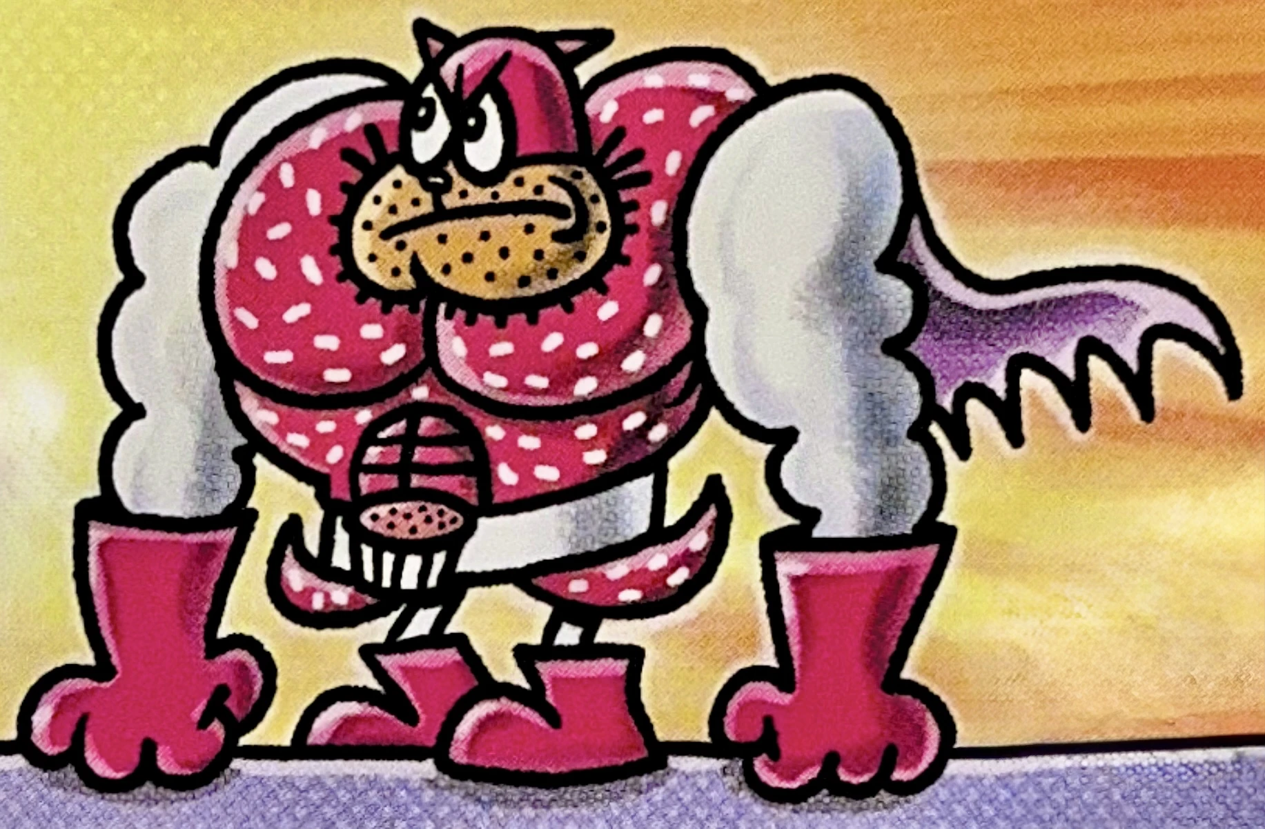 Grampa reveals his backstory in this book, as mentioned above. He later gets cutie-fied by the Space Cuties' cutie shooties, along with the other heroes. Grampa tries to defeat the Space Cuties with hugs again, but the Hug-Proof Space Stank prevents him from doing so, and he ends up getting beaten up with twelve epic smackdowns instead. He is also stuck looking like a cute little stuffie forever because he refused to eat a maple banana flavored cupcake (due to hating the flavor), which turns out to have contained the antidote to cutification.