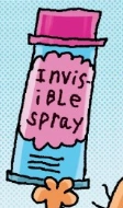 Invisible Spray is a type of spraying can that is used in Dog Man's second chapter, Robo-Chief to help Petey help escape from Cat Jail and pull people's pants down. It loses its effect when the user gets wet. It makes anything invisible.