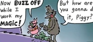He's the ruthless leader of the FLEAS, which is an acronym for "Fuzzy Little Evil Animal Squad." Recently, Piggy got shrunk by a shrink ray, and was locked up in Mini Jail for "crimes and stuff."